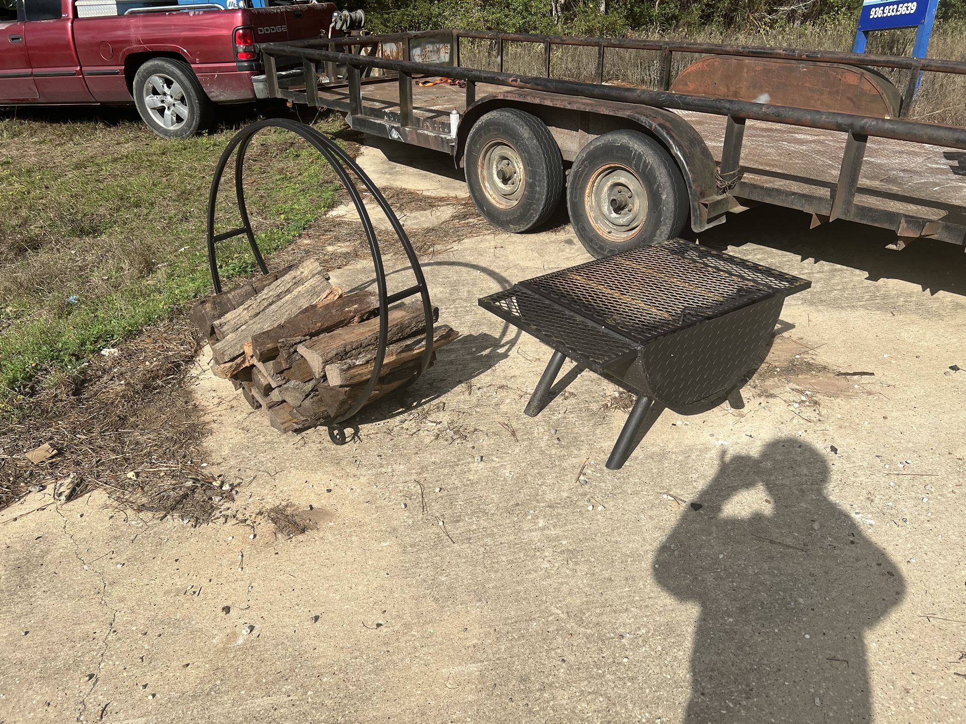 Fire pit and wood rack with 32 pieces of wood Text me for more info