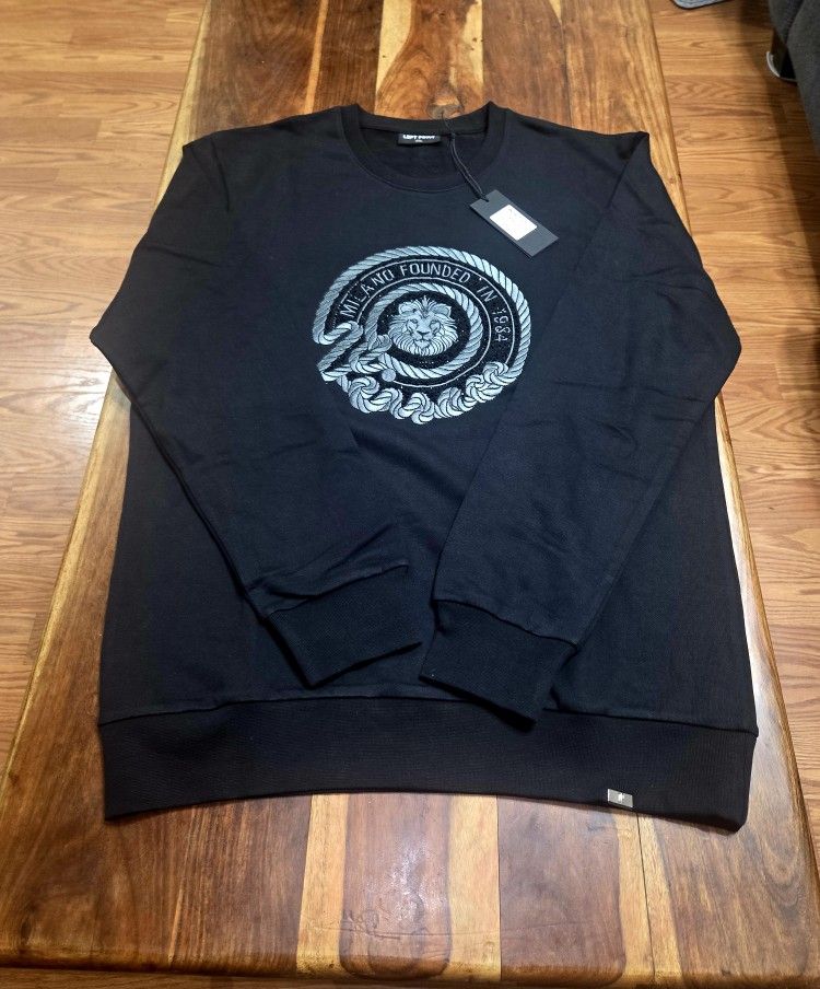 Popular High-End Italian Streetwear Brand -Left Point- stylish and comfortable men's black sweatshirt with a Silver Lion Emblem covered with hand-placed Rhinestones. Perfect for a date night or casual outings. Size 2X-Large but does run under-sized, so this will fit an XL comfortably. Brand New with Tags and Original Logo Bag!