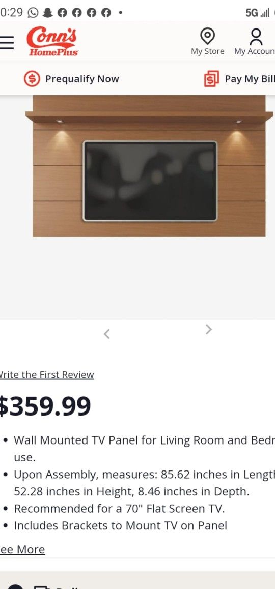 Floating wall entertainment center for up to 70 inch screen tv ..brand new pirchased at conns paid alot more still in box and color is brown with lights ..
