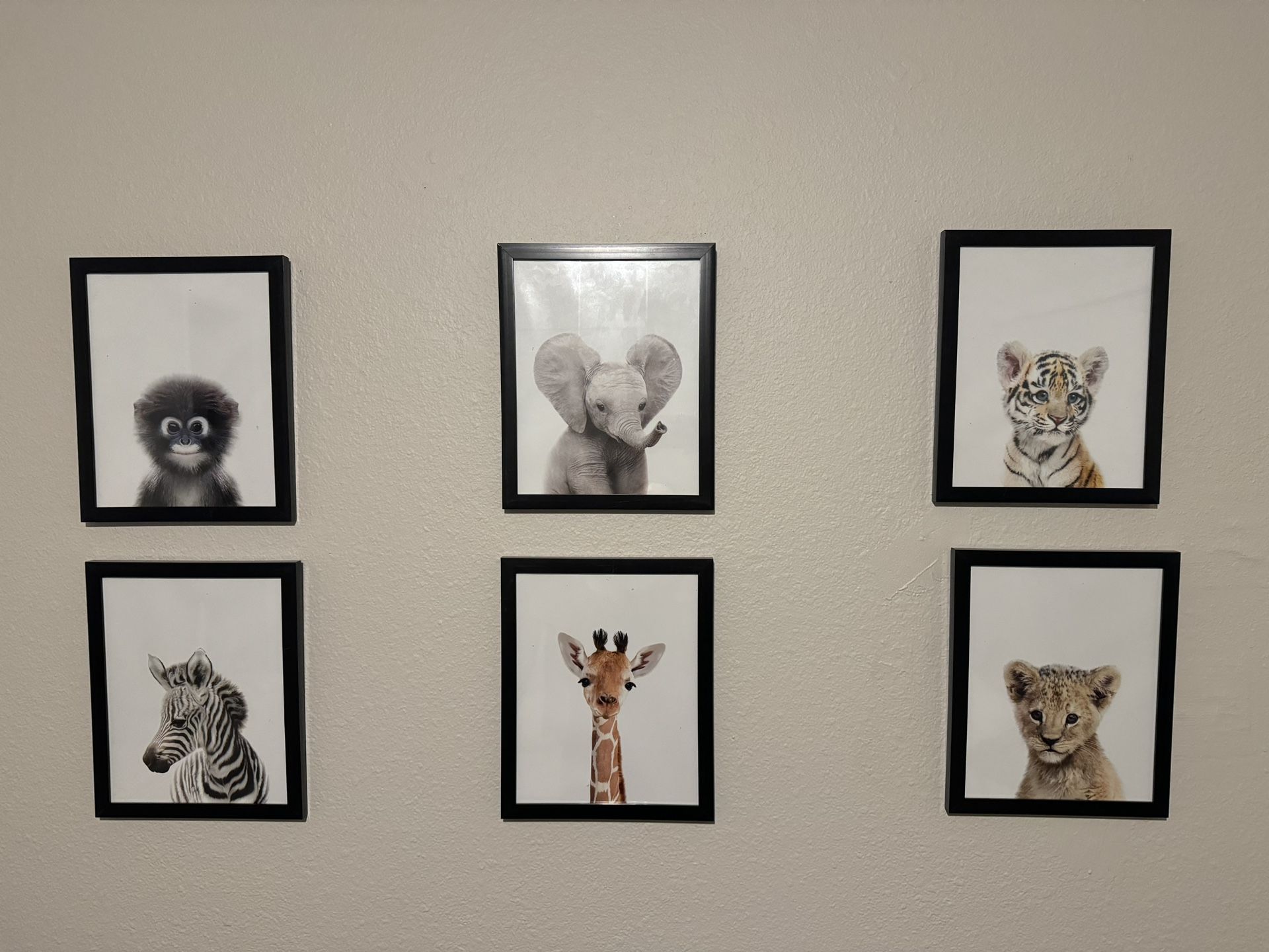 6 different animal frames for a safari nursery room. I do have an extra black frame that will be included. $50 Check out my other listings! •if post is still up, it’s available