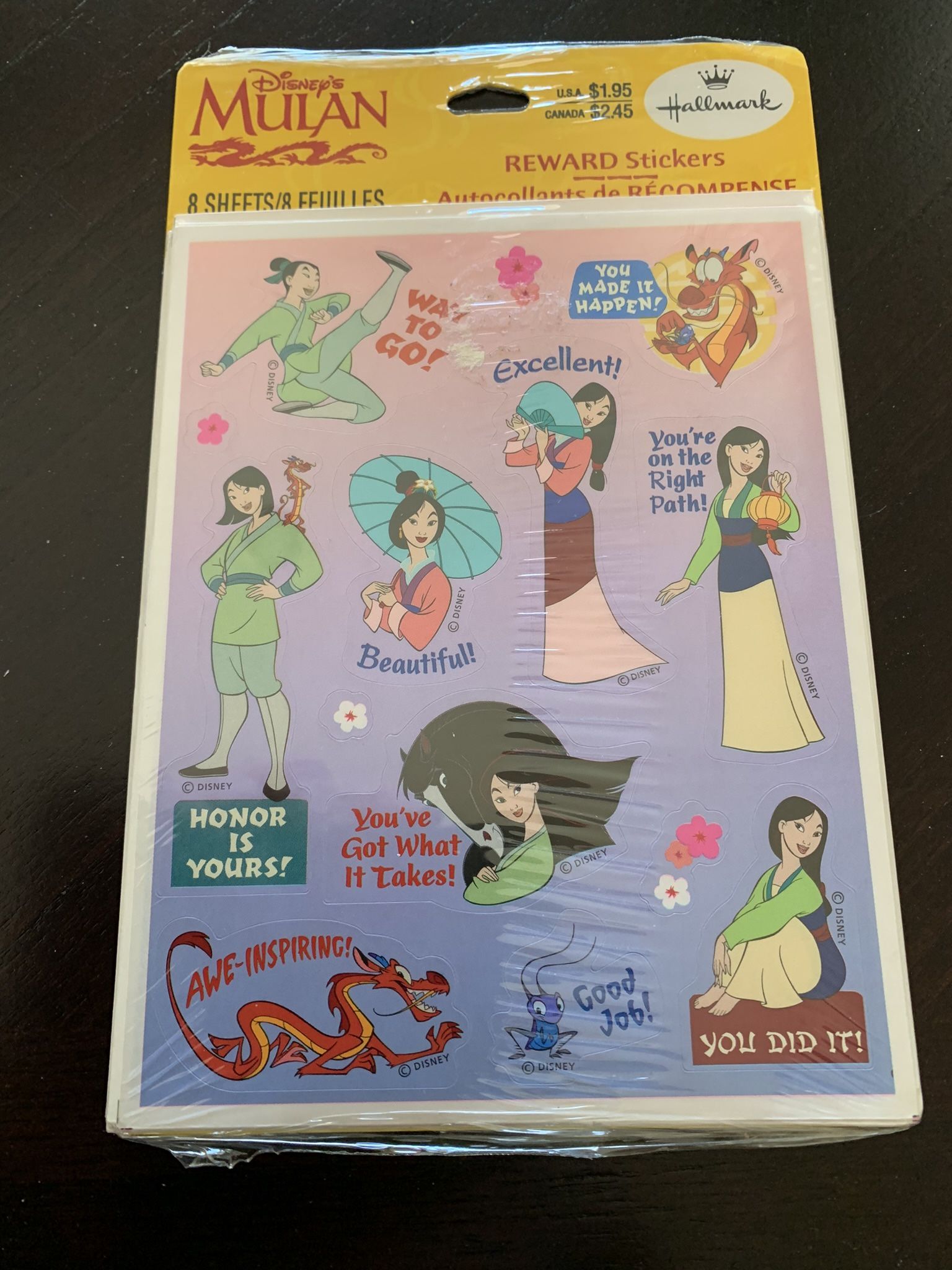 DISNEY’s MULAN STICKER NEW PACKAGE OF 8 SHEETS BY HALLMARK ASKING $5 FOR IT