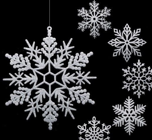 Large Snowflakes Ornaments 12" Plastic Glitter Snowflake Decorations Giant Winter Christmas Hanging Decor Oversized Snow Flakes Ornaments