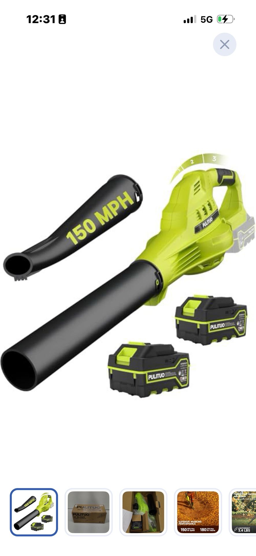 Leaf Blower Cordless with 2X 4.0Ah Batteries and Charger, 150MPH/180CFM Lightweight Cordless Blower, 3 Speeds Small Electric Leaf Blowers for Lawn Car