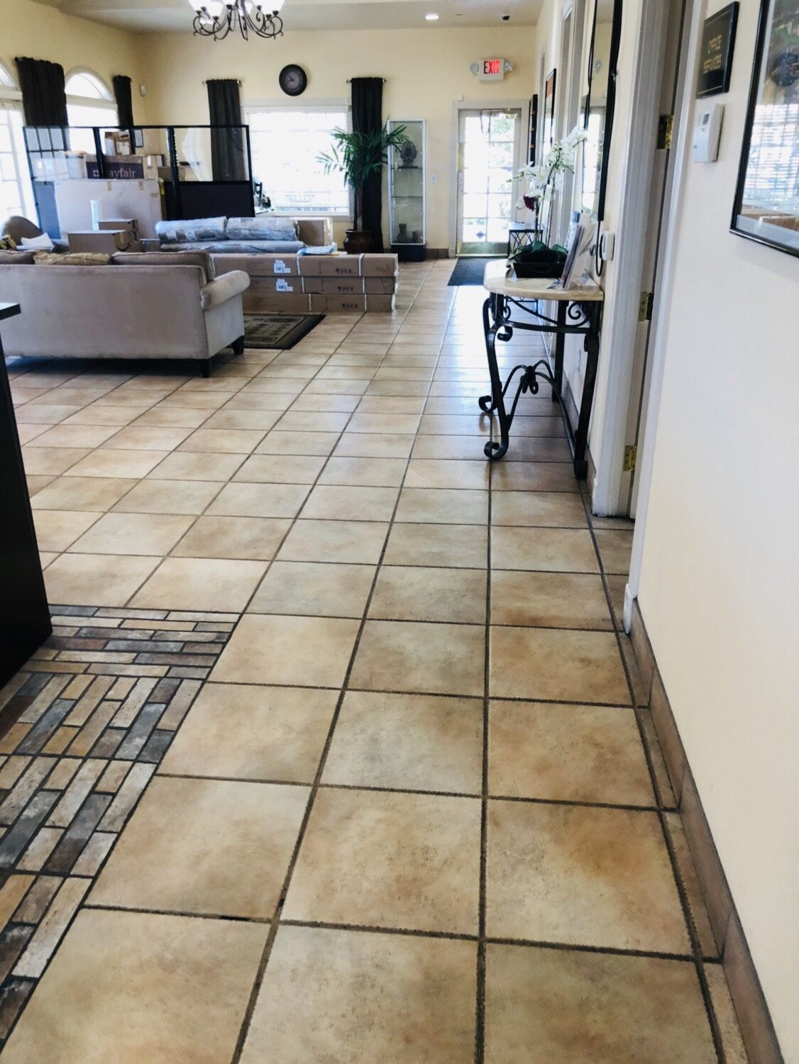 Retile any area to give a Beautiful new look . We also can paint and replace baseboard