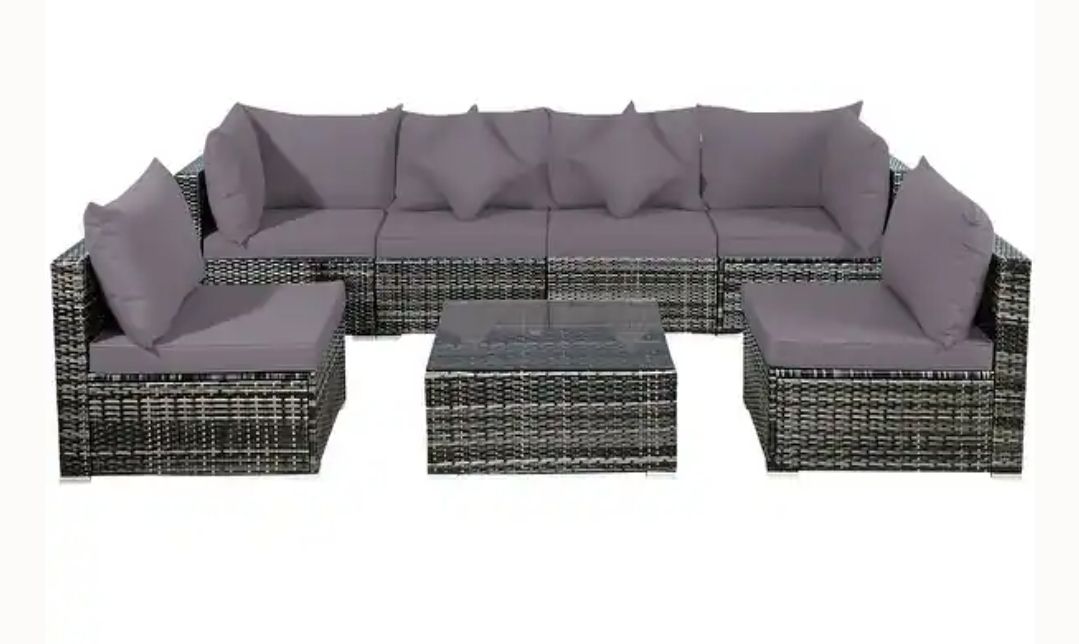 Fairly new back yard furniture with all weather cover and rug.