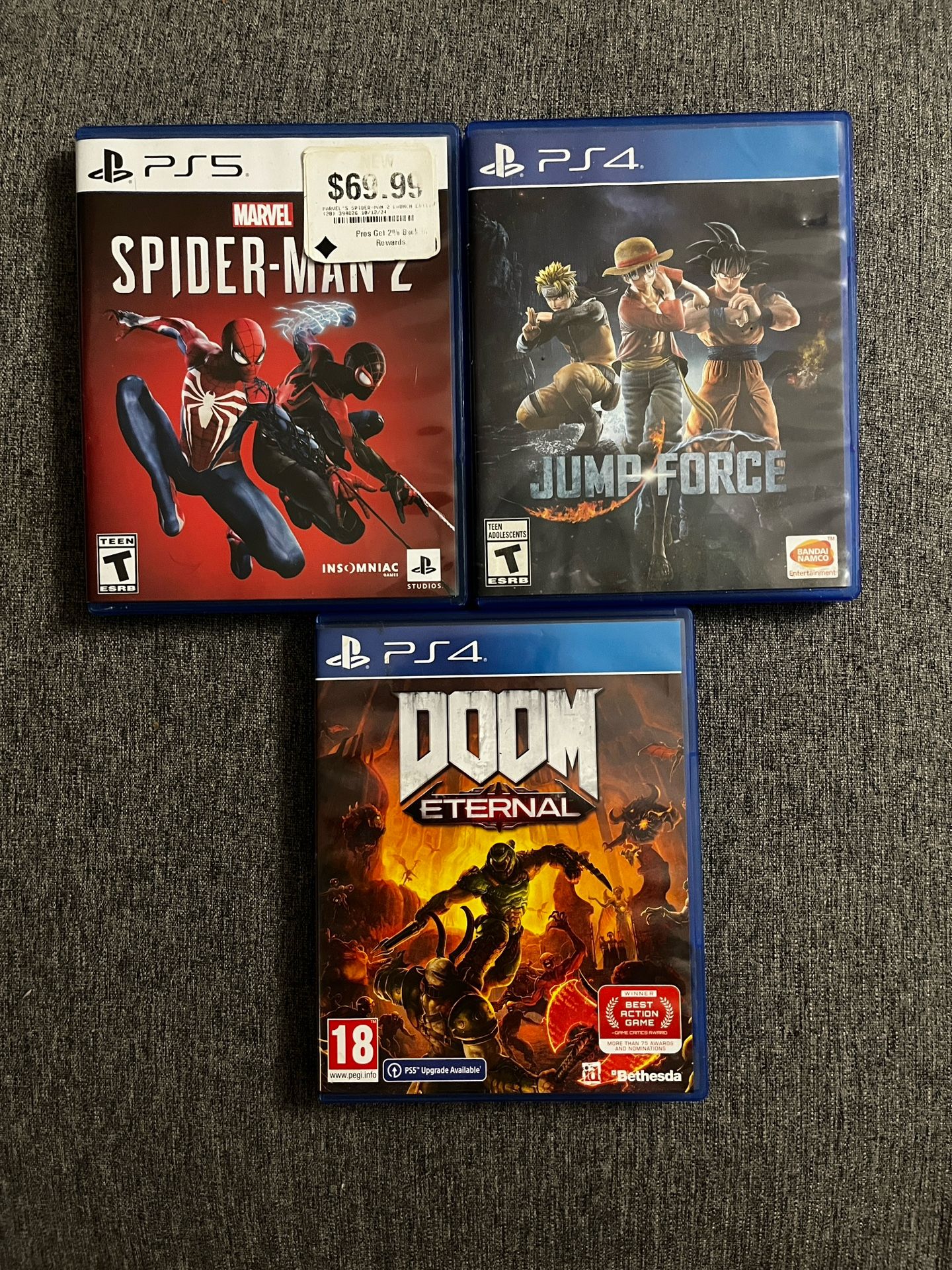 PlayStation 5 Spider man 2 $35 PS4 Doom $15 PS4 Jumpforce $15 All 3 for $50