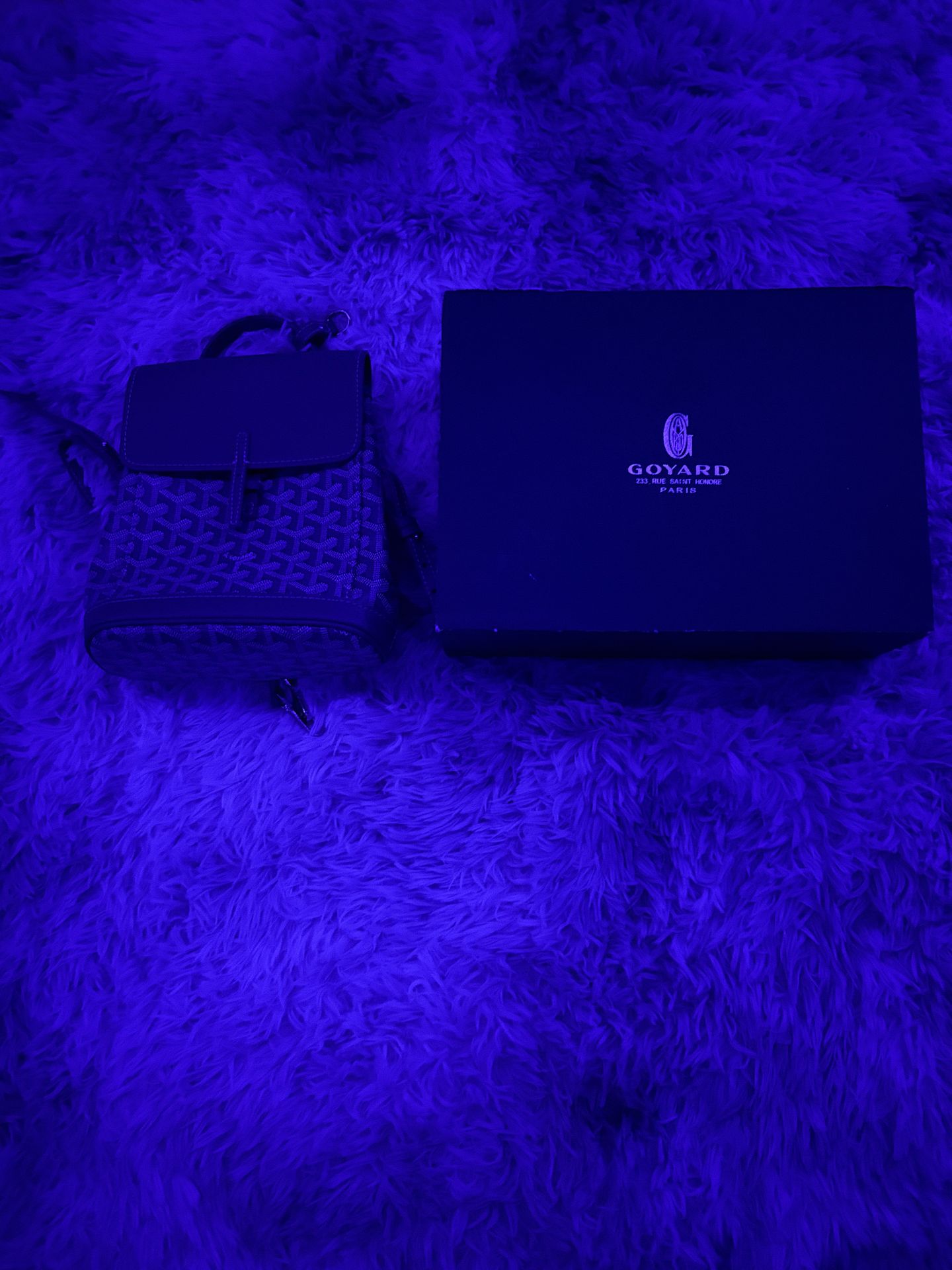 Authentic Goyardine Calfskin Mini Alpin Backpack in gray. Worn only about twice and in like new / excellent condition. Looks amazing in person. Comes with the original box and dust bag. I bought it a while ago for prom and never really used it again, so it’s just been sitting in my closet. Very stylish unisex bag that can be worn as a backpack or bookbag, perfect for everyday use. • Includes box & dust bag • Unisex Serious buyers only. Don’t message if you’re not ready to buy.