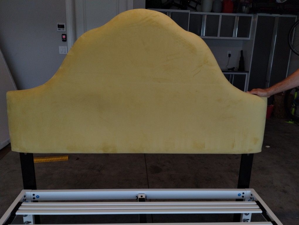 Mustard yellow performance velvet queen headboard and white bedframe. Selling because it's too big for the bedroom in new house.