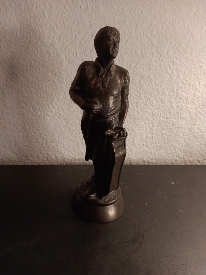 GORGEOUS NEW Austin Sculpture 9" Bronzed Golfer Figurine. This stunning Austin Sculpture features a beautifully crafted 9" bronze golfer figurine, perfect for any collector or lover of golf. The attention to detail is remarkable and the quality of the piece is evident in its weight and texture. The sculpture is a wonderful addition to any home decor or office space, and is sure to bring joy and admiration to all who lay eyes on it. The brand, Austin, is known for producing high-quality sculptures and this piece is no exception. Don't miss out on the chance to own this gorgeous new figurine. Several other Austin Sculptures sold separately. BOX 40