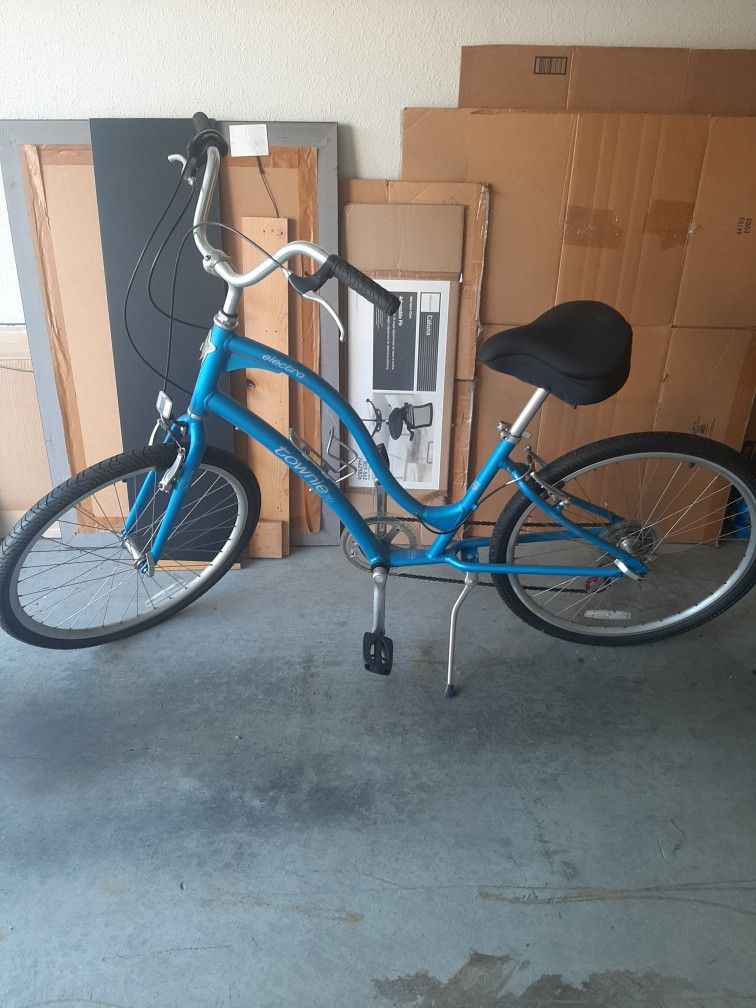 Standard multi-speed pedal bicycle manufactured by Electra. Tires are flat and may need new tubes. Used but in good condition. Will include owners manual and Helmet.