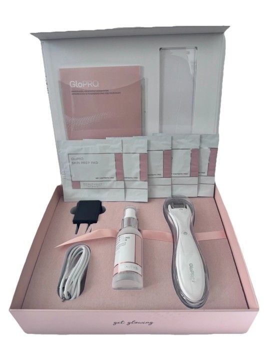 ALL ITEMS ARE AUTHENTIC AND ORIGINAL * GLOPRO MICRONEEDLING REGENERATION TOOL * By Beautybio Smoke-Free-Home BRAND NEW IN BOX Set Incl. 1 > GloPro Regeneration Tool With Rechargeable Battery 1 > Usb Cable Plus Wall Plug 1 > GloPro Sanitizing Spritzer Empty Bottle 5 > 5 Pcs. GloPro Skin Prep Pad Product details Beautybio GloPro Regeneration Tool White with 5 Residue Eraser & 1 Skin Prep Pad helps to smoothen, exfoliate, and renew your skin in one easy step. Unlock radiant skin with Beautybio's GloPro Regeneration Tool! This revolutionary device harnesses microneedling technology to stimulate skin's natural rejuvenation process, promoting firmer, smoother, and more youthful skin. Ideal for amplifying the absorption of serums and creams, the GloPro ensures your skincare products work harder for you. Enhanced with red LED light therapy, it targets fine lines and evens out skin tone, revitalizing your complexion. Suitable for all skin types, this tool is a must-have in your skincare routine. This is a unisex product, comes in creams form. To use, cleanse well, and apply tool in vertical and horizontal directions for one minute. REAL PICTURE REAL STUFF 100% GENUINE GUARANTEED All our products are 100% authentic and Name Brands We do not Buy or sell knockoffs