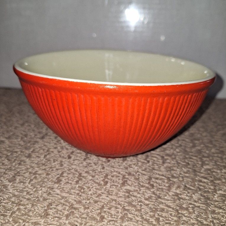 Vintage Vintage Hall Red Ribbed Mixing Bowl. Great condition. See measurements on photos. Excellent vintage condition Porch pickup. (214).