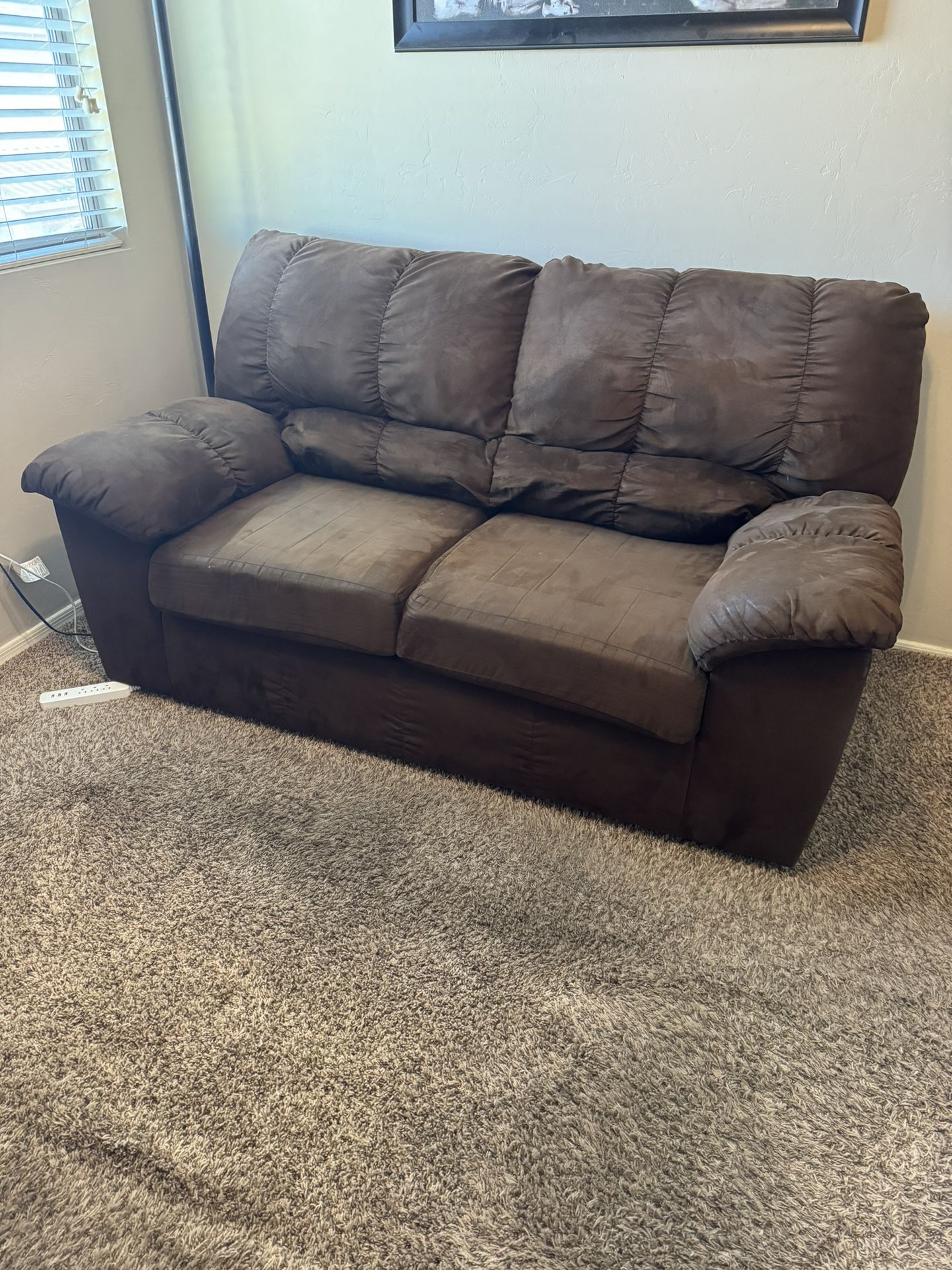 Used but good condition love seat. Cushions still very comfortable with lots of life left. Few small stains that can easily be cleaned with the right cleaner. Only asking $50 was $650 new.