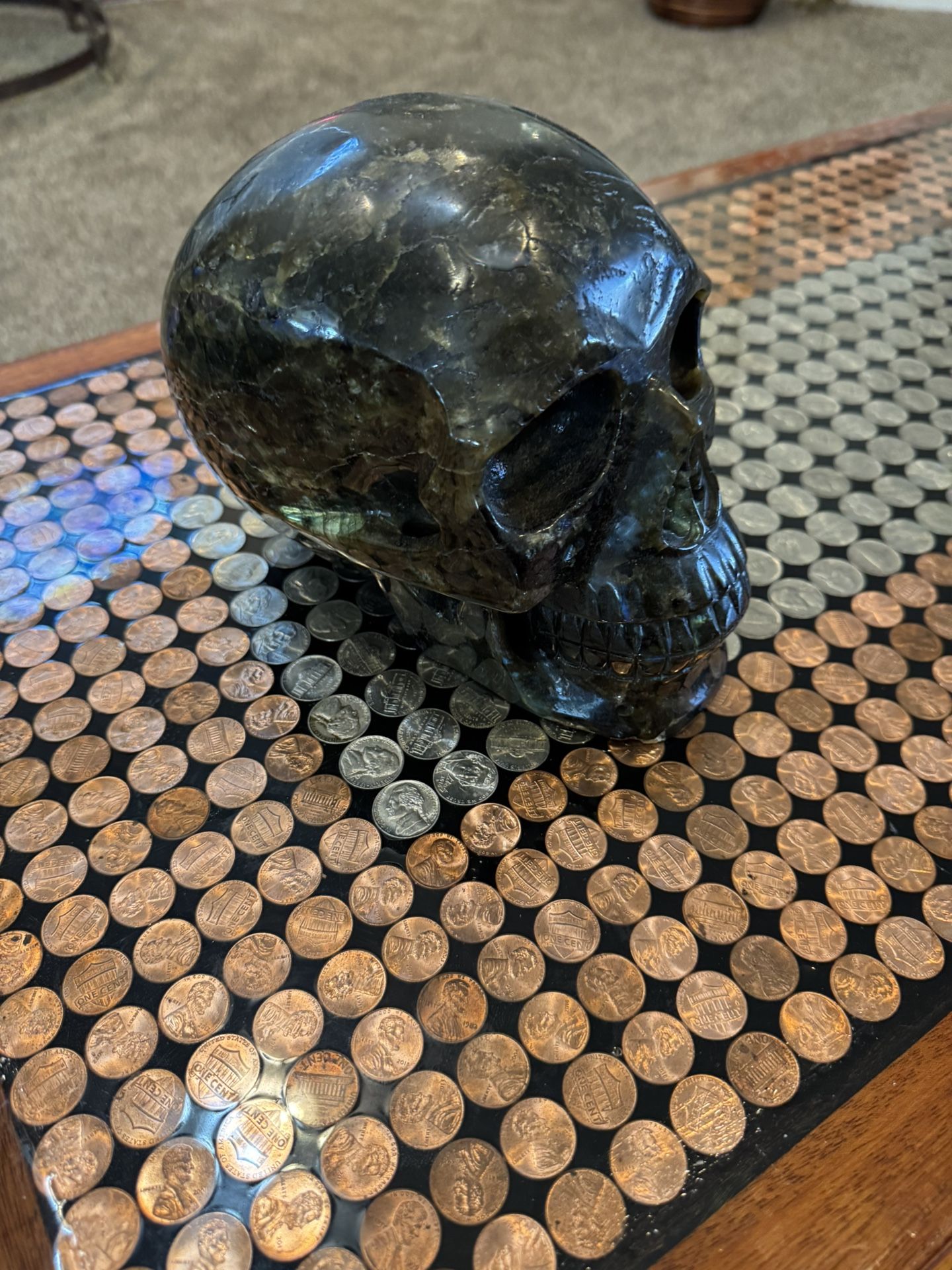 Large Laborite Skull Crystal Reflections Of Blue And Colors In Light, 14lb