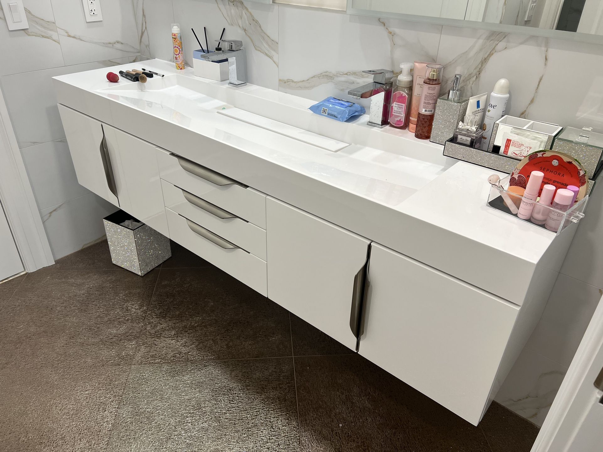 BRAND NEW - James Martin double sink only. Model: CS-S378D-GW. Ordered two and only used one. Measurements are 72.6 W x 18.75D x 4 H. Glossy white The retail is over $1,500. Pictures are from the one I used. The other is sealed in the box. You can buy separately original vanity or have it custom made. Sink has a modern look with infinity drain. See link below. https://offerup.co/faYXKzQFnY?$deeplink_path=/redirect/