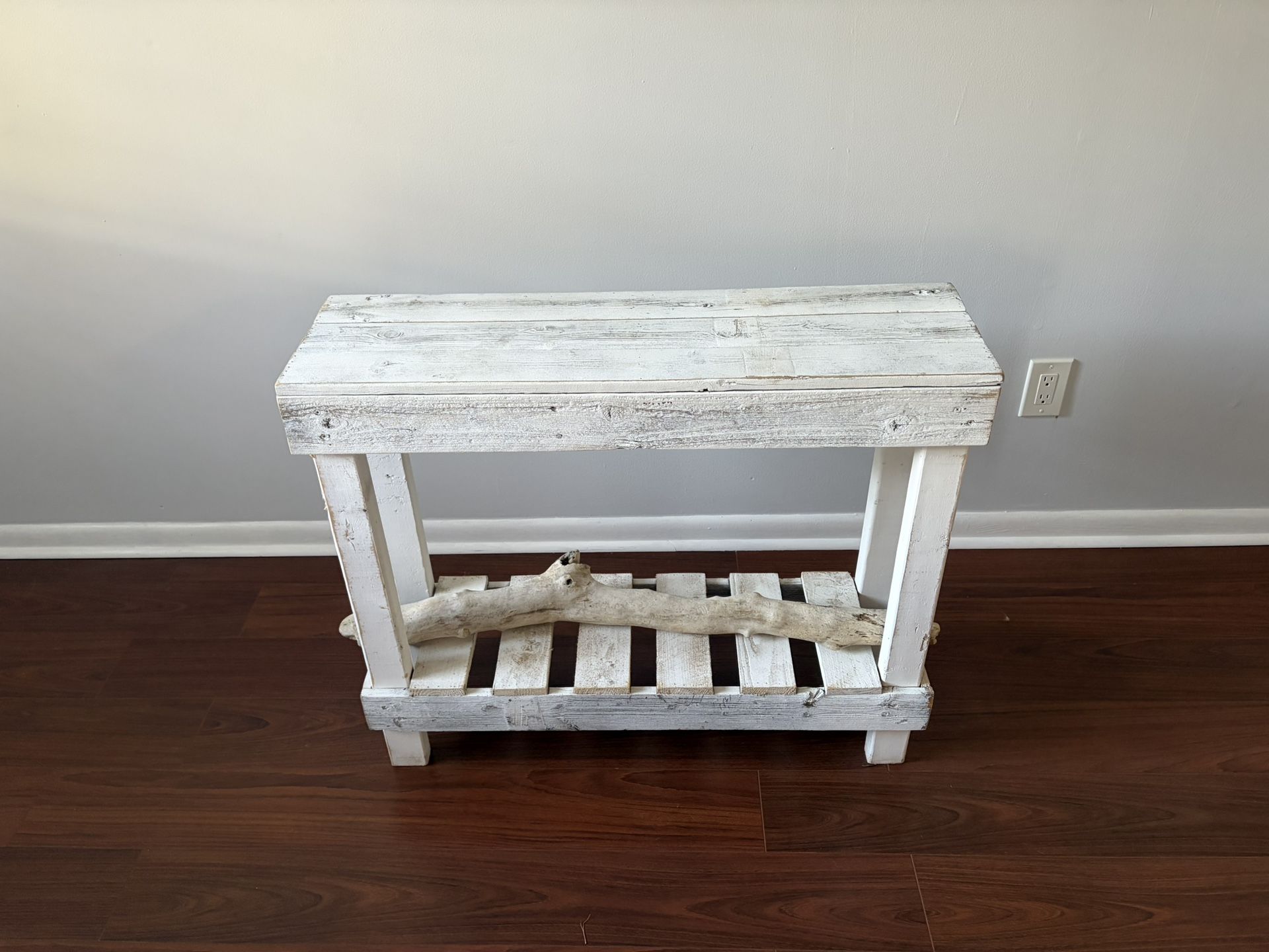 Handmade coastal accent table. Made of wood. Beautifully done white wash. Must sell quickly. Dimensions: 36” L x 30” H x 10” D