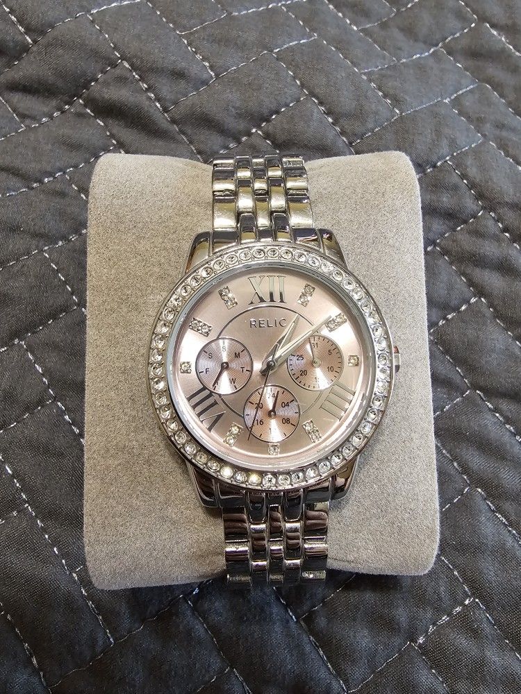 Relic Lightly Used Silver Watch With Pink Face