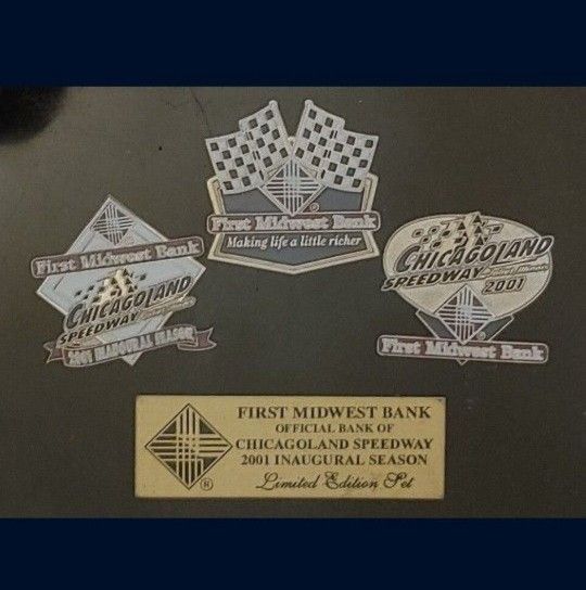 Chicagoland Speedway 4 PIECE Vintage (2004) "INAUGURAL SEASON" COLLECTOR'S PIN SET (New In Original Case) MINT CONDITION👀🤯 Please Read Description.