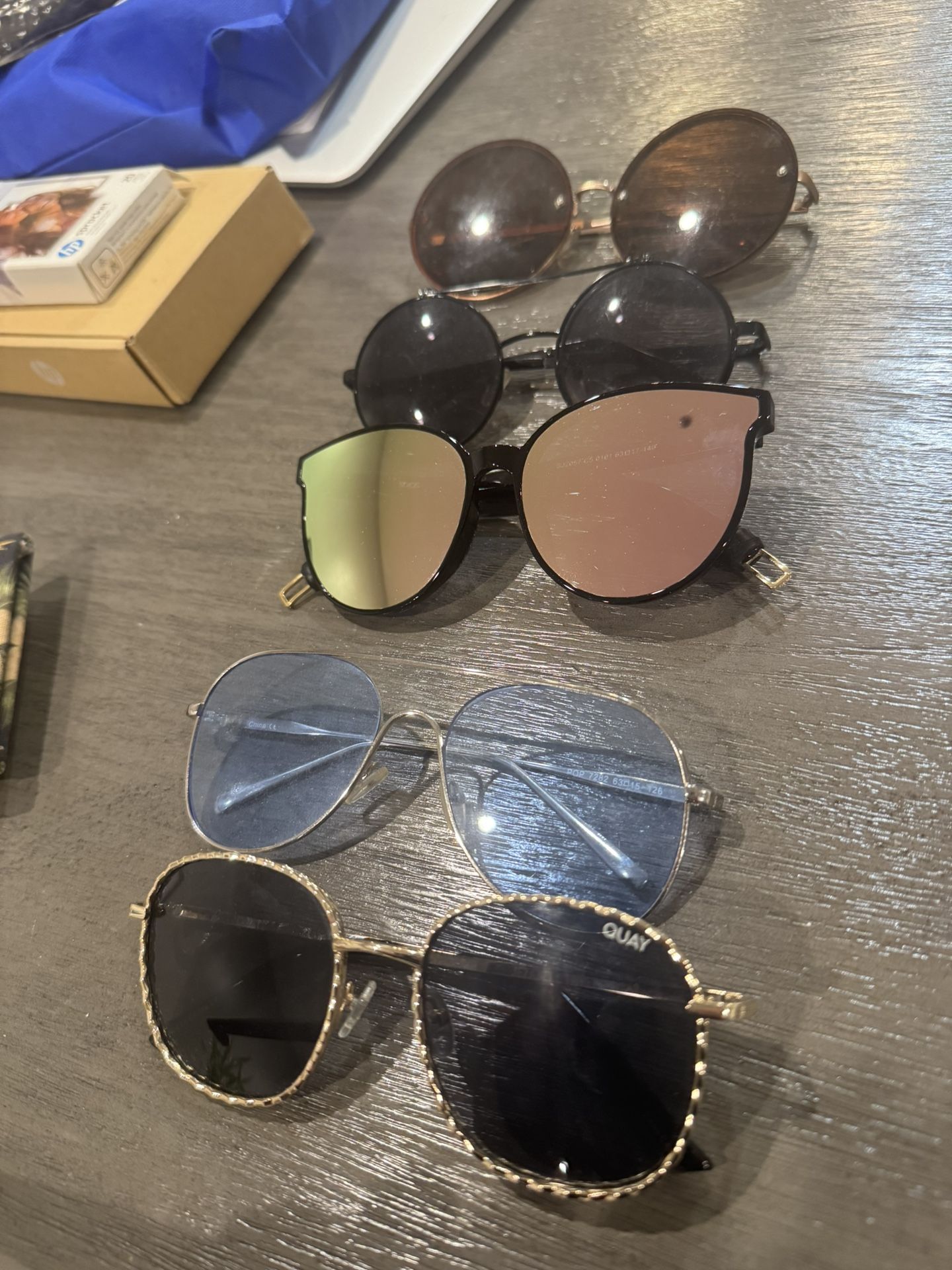 Everything must go by 10/4/25! All for $10 Quay jezabell and various sun glasses round reflective blue QUAY Jezabell Sunglasses (online it’s $85) Blue sunglasses Mirror reflective sunglasses Round sunglasse