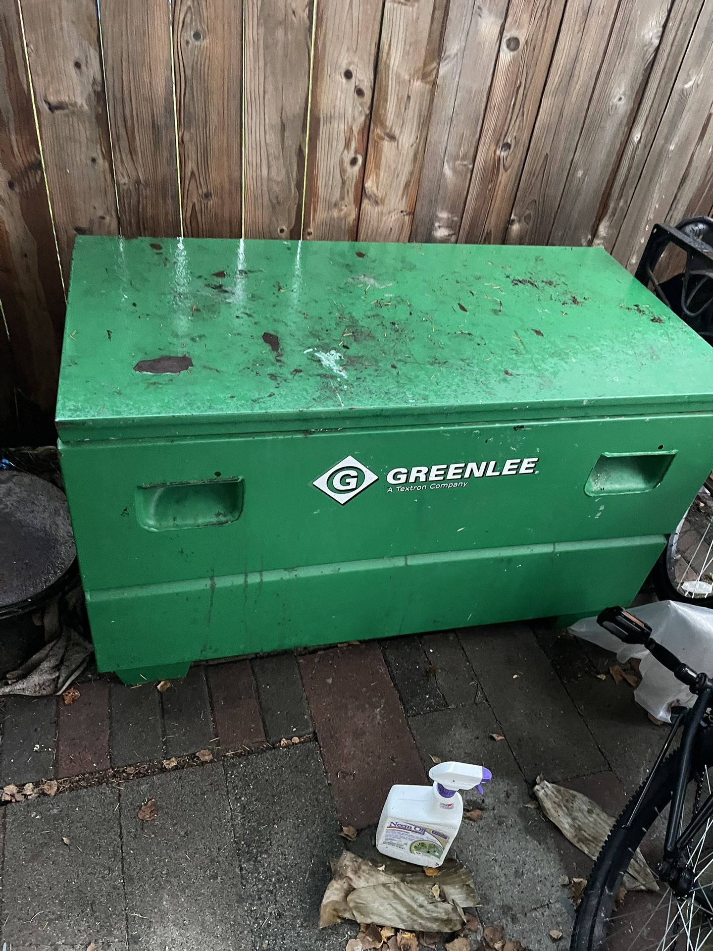 Tool box Greenlee w24”xL48”xH28” I was using it for 4 years and at the moment I am no longer using it and it is waiting to be used and I don't want it to rust while unuse (I accept reasonable offers)
