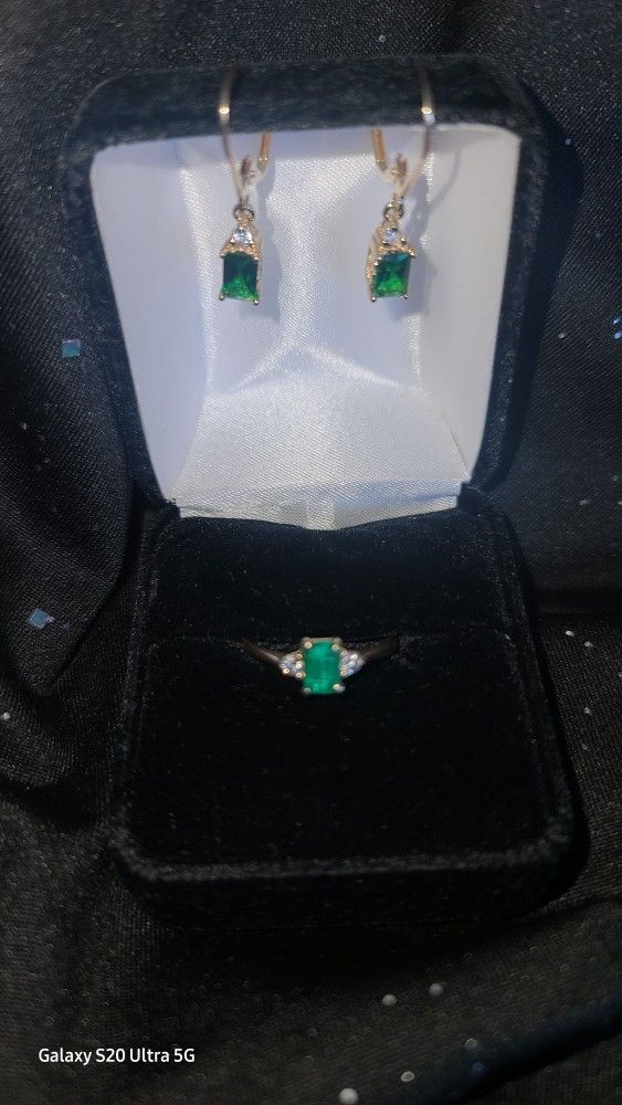 Emerald cut Ring and earrings.