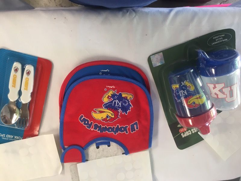 KU Bibs and cups with Chiefs fork and spoon