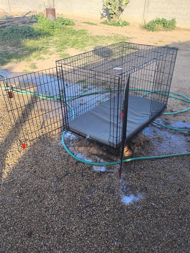 Large dog 48x30x33 metal kennel black with plastic liner and fabric bedding made by Kong