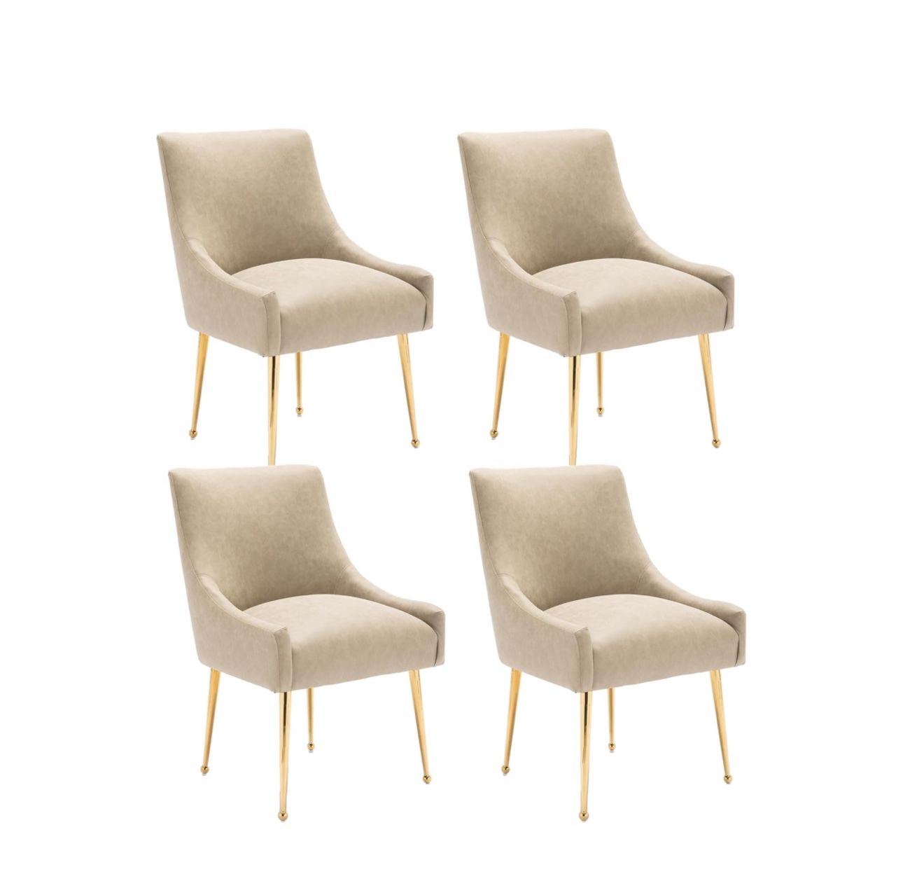Dining Room Chair, Vanity Chairs, Luxury Accent Chairs, Faux Leather, Upholstered PU Leather, Mid-Century with Metal Legs, Set of 4