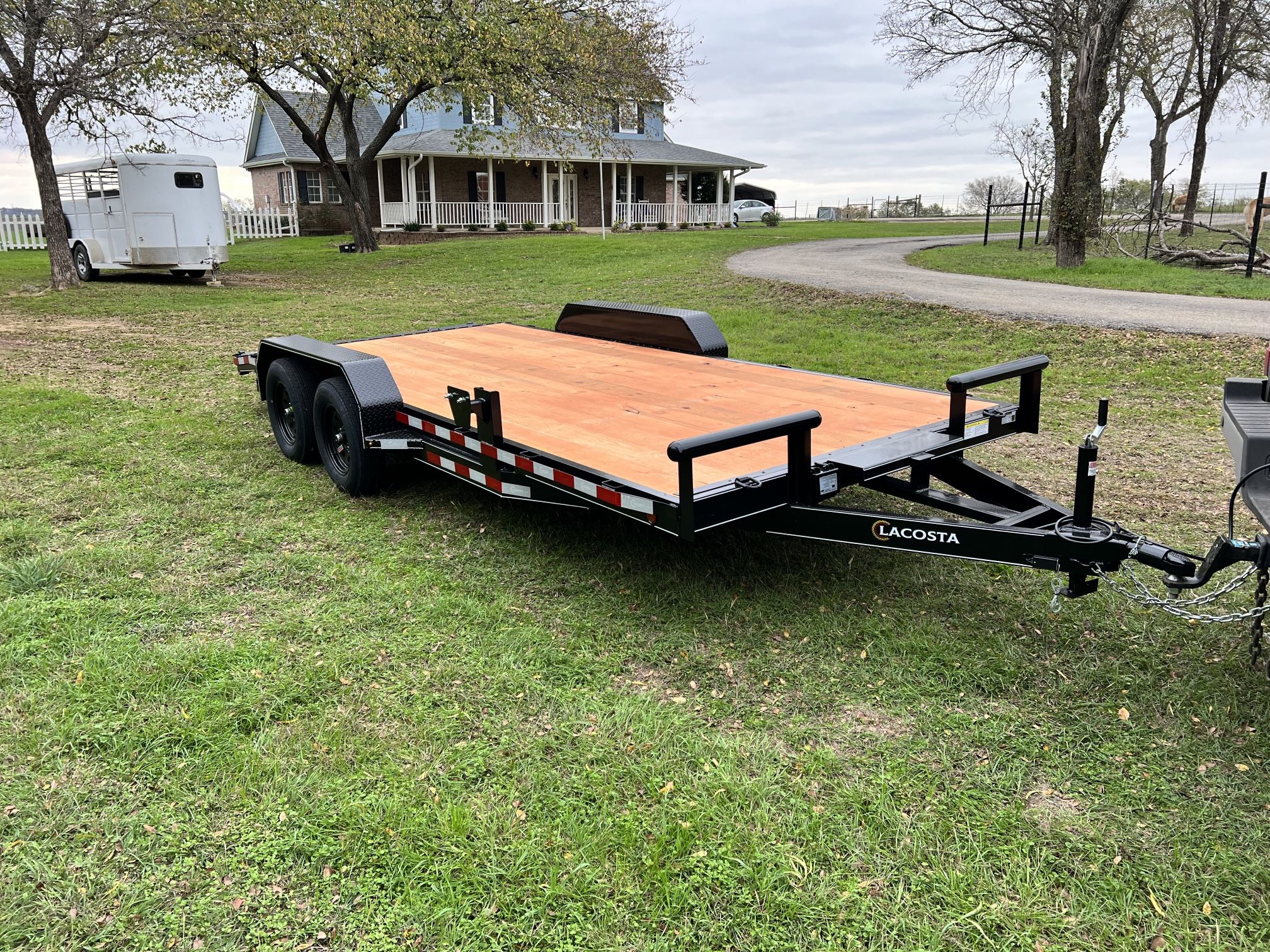 Brand New 18x83 car hauler trailer! Made in Texas by LaCosta Trailers. - Stored Ramps - 2” Coupler - LED Lights - Brakes on Back Axle - Winch Plate - Rub Rails Tax, title, license and warranty all included. I’ll do the registering for you! Looking for a different trailer? I have it!
