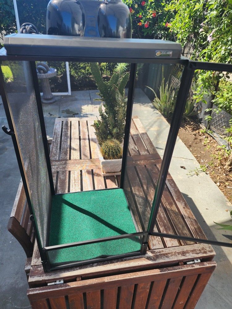 Please Read No need to ask if it's still available as I will delete it upon sale. Selling a brand new put together zoo med deluxe chameleon kit. Originally paid over $300.00 Additionally purchased the Dome light separately for $55.00. Comes with treated wood plant. Also a thermometer. Price to sell is $200.00 selling everything together. Height 30" Width 15" 7/8 Depth 15" 7/8