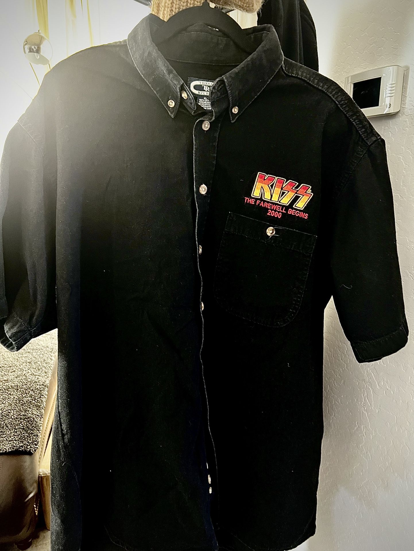 Vintage KISS black denim button up shirt size X-large. Been kept in stored wrap in my home. Great condition