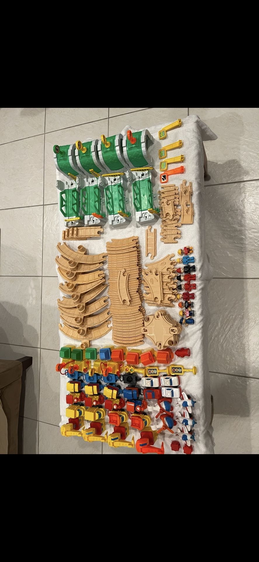 (3) Fisher-Price Flip Track Rail & Road Sets. This is 3 sets all together with extra construction guys added for more fun! Box is just for display purpose. Total of 194 pieces. Pick up is in Coral Springs. Cash only.