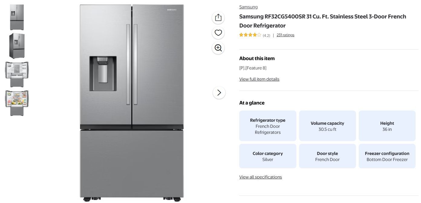 Samsung RF32CG5400SR 31 Cu. Ft. Stainless Steel 3-Door French Door Refrigerator. 1000