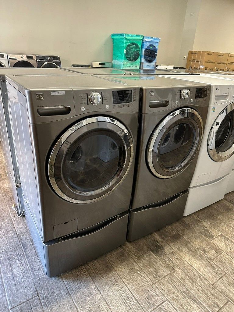 Kenmore elite stainless steel Frontload washer and dryer set electric with warranty