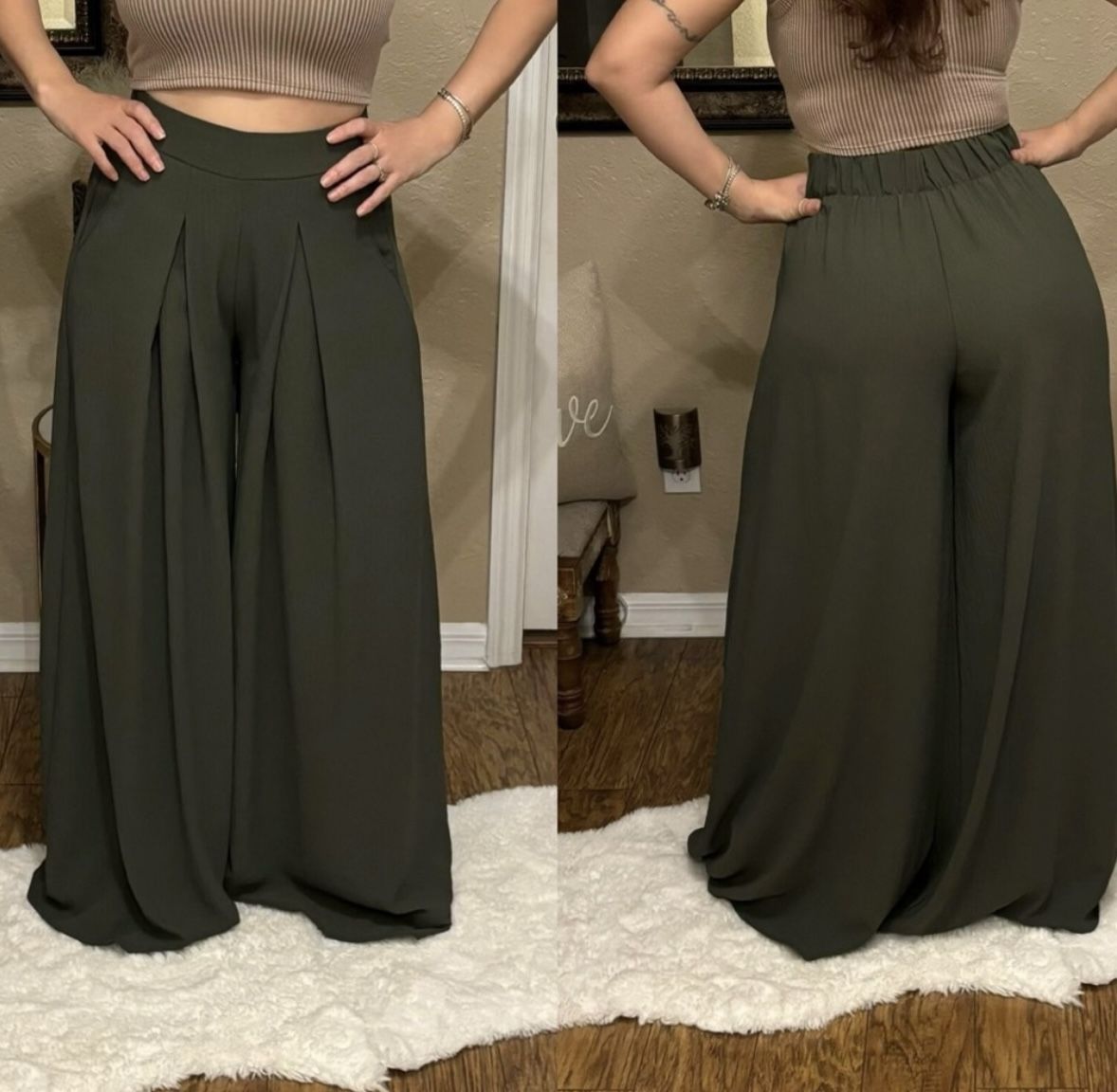 Brand new boutique palazzo pants in olive green. Size Large *CHECK OUT MY OTHER LISTING FIR MORE NICE CLOTHING AT AFFORDABLE PRICES!!!