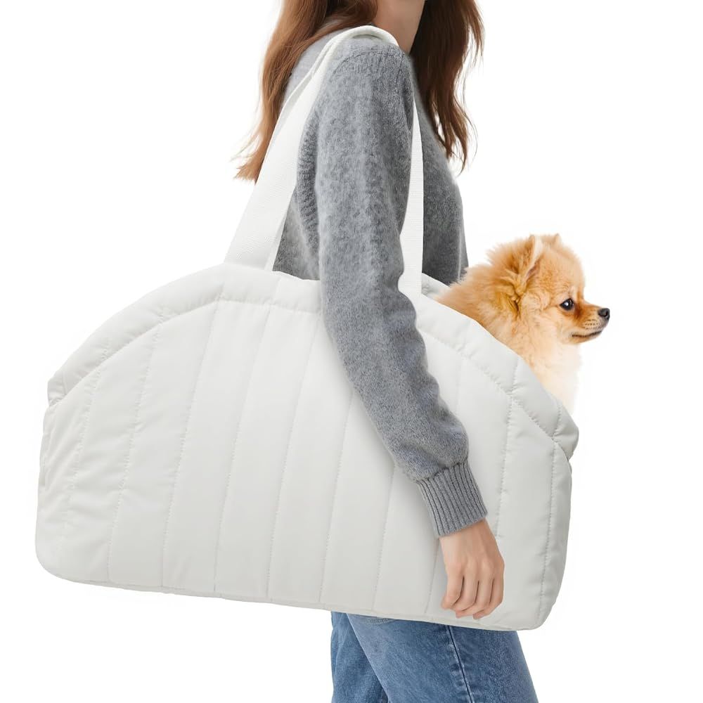 EASY MAINTENANCE: Our dog purse carrier for small dogs is machine washable with a removable hard base and foam cushion, keeping your carrier fresh and ready for any travel. IDEAL FOR TRAVEL AND SHOPPING: ideal dog carrier purse for everyday use around town, from cafes to shop. This pet carrier purse ensures your pet travels in style and comfort. ULTRA SOFT AND COMFORTABLE: This dog purse carrier for small dogs is designed for the stylish dog owner, Our dog purse carrier measures 20x7.9x11.8 inches, suitable for pets up to 15 lbs. Please do not choose this carrier only based on weight--please refer to your pet's length and height. With a plush, ultra-soft interior for ultimate comfort during everyday adventures.. LARGE PET CARRIER: our dog purse carrier for small dogs features a large, easily accessible outer pocket to store essentials like keys, wallet, and treats, making it perfect for travel, outdoor and shopping. Brand new I have 3 left. Cost 54$ online