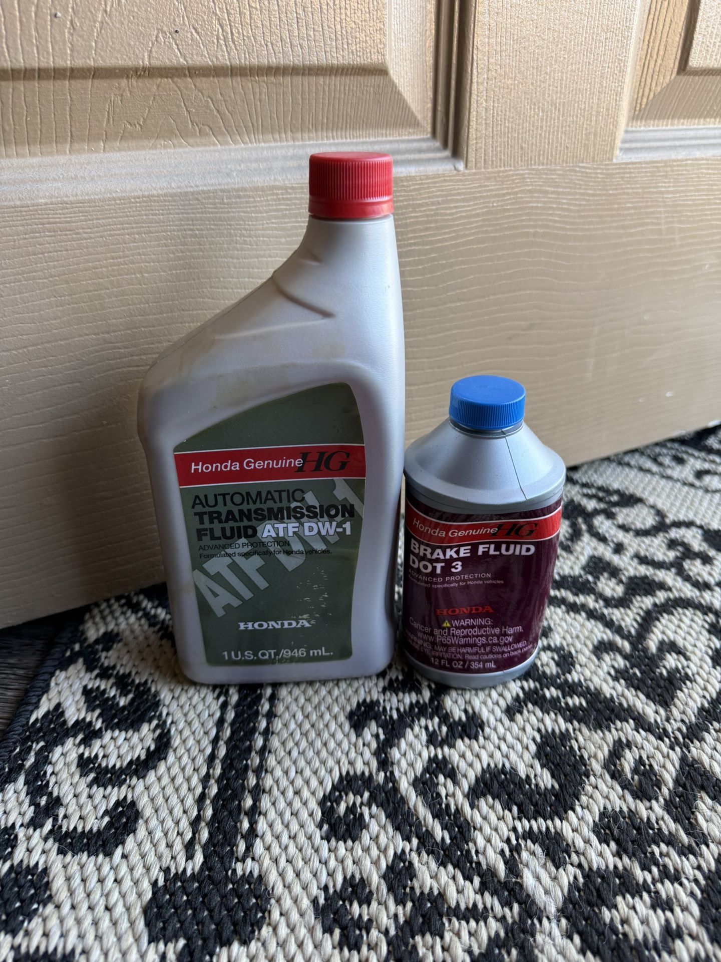 New Honda Genuine Automatic Transmission Fluid ATF DW-1 ($20) Honda Genuine Brake Fluid DOT 3 ($10) Or $25 for both. If you have a Ridgeline 2008, 2009, 2010, 2011, 2012, 2013, 2014. I have suspension parts available as well.