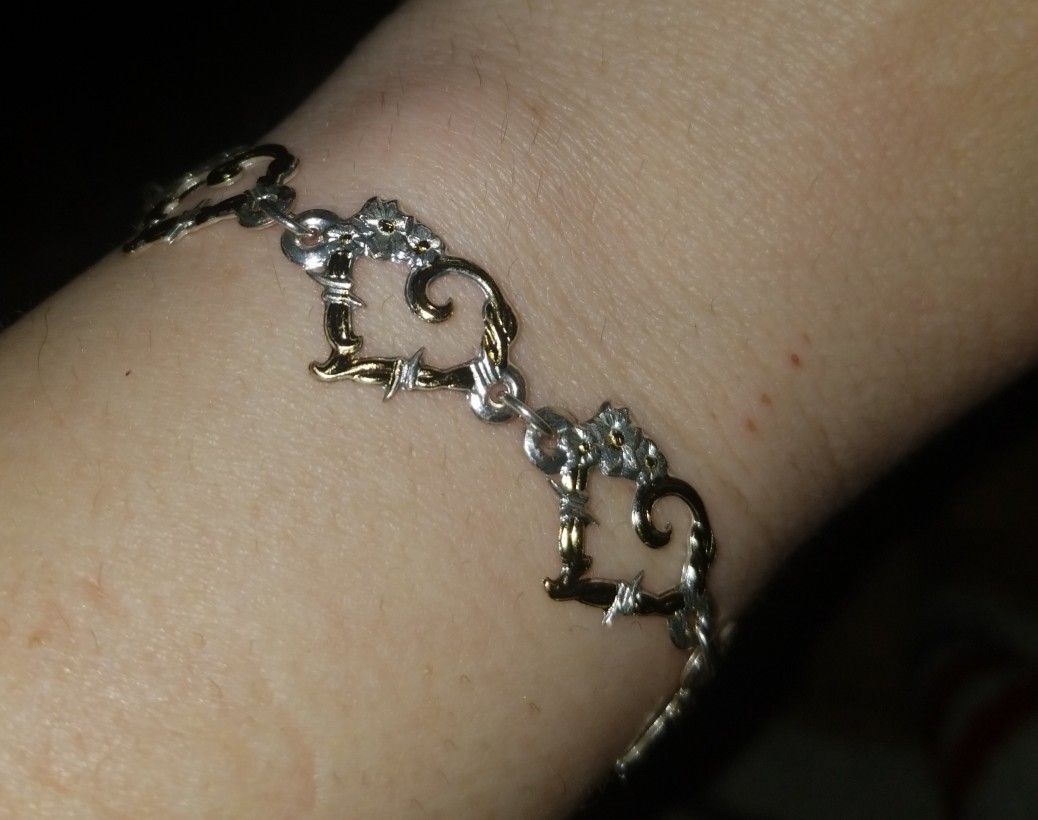 Montana silversmith bracelet. Hearts flowers and barbed wire.