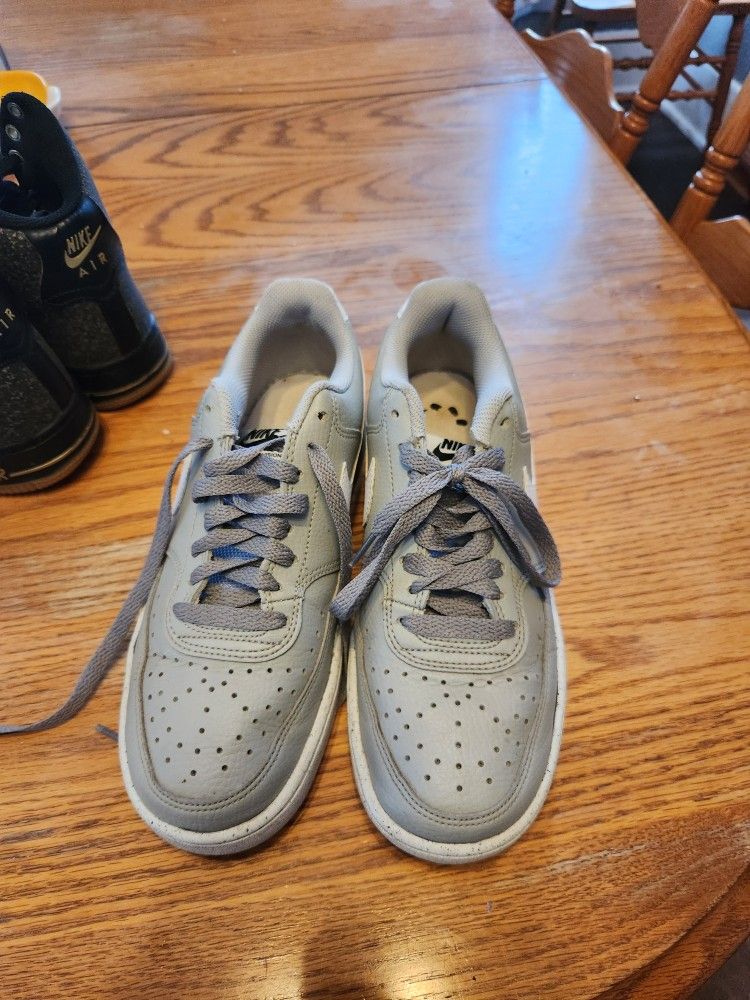 My son is selling his Size 6.5 grey Nike airforce ones, asking 75