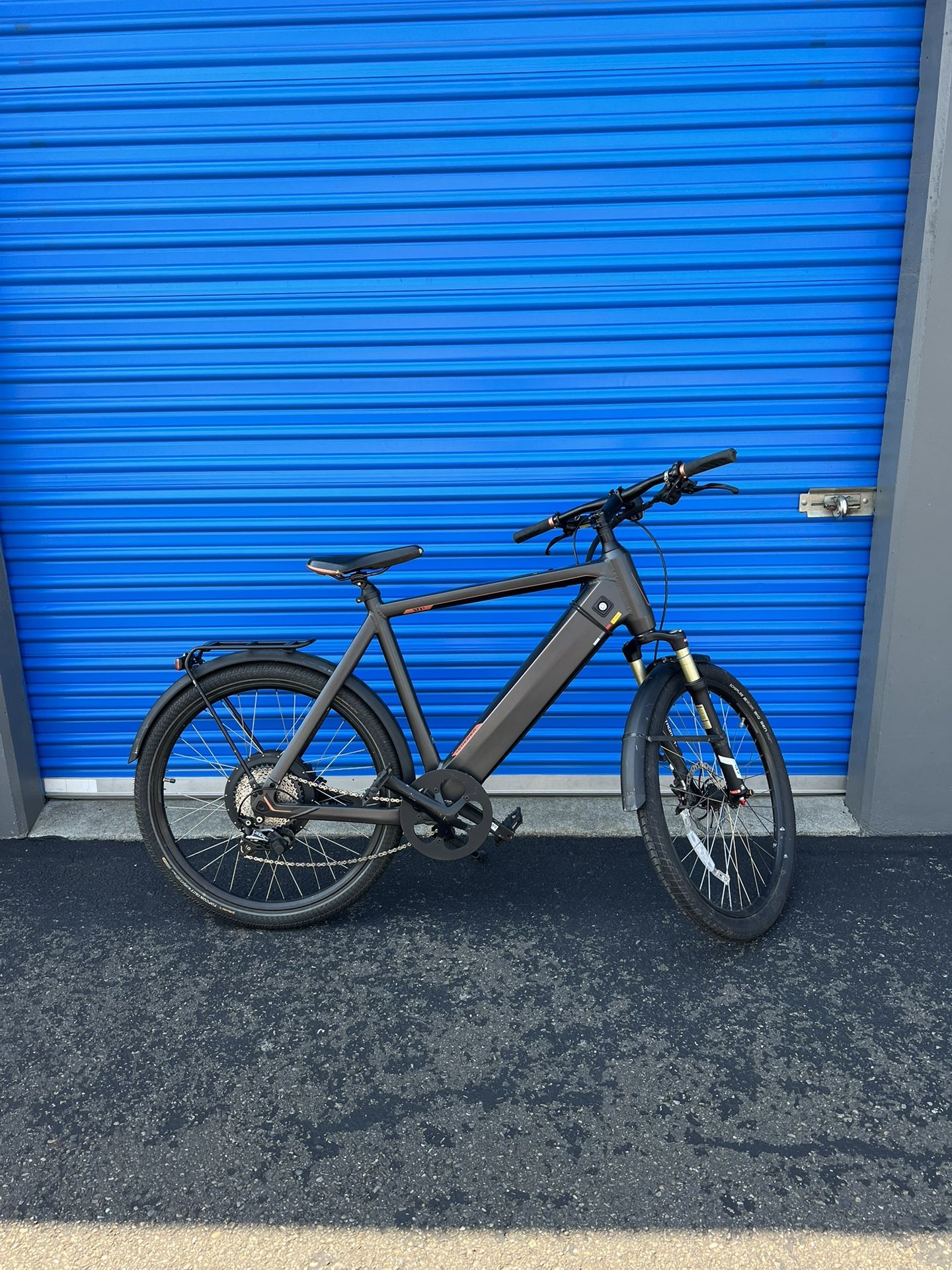 Stromer ST1x Electric Bike 2019 – Size M/L – No Battery – $750 Premium Swiss-made Stromer ST1x electric bike (2019) in excellent overall condition. High-quality frame, powerful rear hub motor, front suspension, hydraulic disc brakes, and clean electronics. Frame size M/L. Bike can be charged externally through the frame charging port (battery does NOT need to be removed to charge). Original retail price was approximately $4,500–$5,000. Important: Battery is NOT included. Charger is NOT included (logically not included since battery is missing). Key is NOT included. Battery compartment cover does not lock and is currently secured with a strap (see photos). This does not affect riding or charging functionality. Replacement battery, charger, and lock/key hardware are available from Stromer. Bike is in excellent cosmetic condition with normal signs of use only. No cracks, no bends, no structural damage. Stored indoors. Priced accordingly due to missing battery and lock components