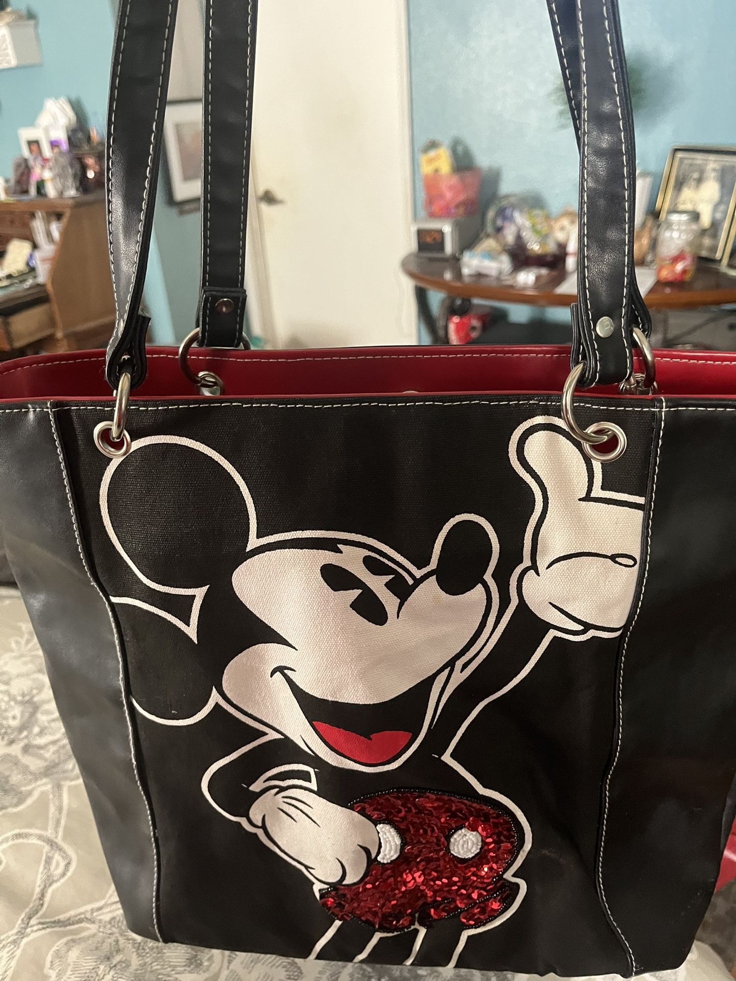 I have one Disney handbag fair condition clean inside small Nick on the back can’t hardly see it asking $20