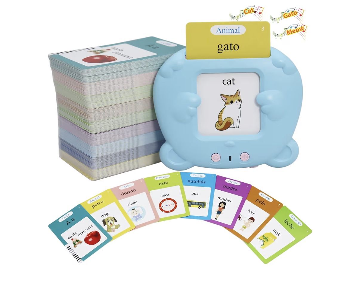 Spanish & English 510 Words Alphabet Bilingual Talking Flash Cards for 3-8 Years Toddlers, Pocket Speech Buddy Therapy Autism Toys, Educational Learni