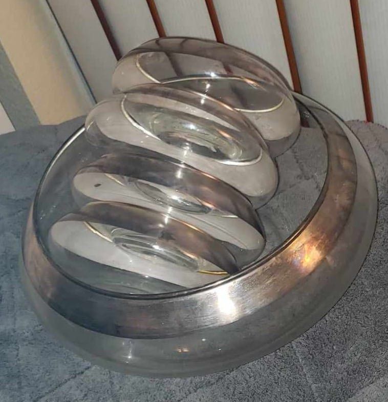 X5 VINTAGE DOROTHY THORPE STERLING SILVER RIM BANDED CRYSTAL GLASSWARE CUPPED BOWL SALAD DISHWARE DISH SET