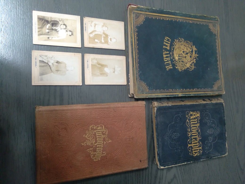 RARE SENTIMENT ALBUMS FROM FRIENDS, RELATIVES, TEACHERS, PREACHERS, TOWNS PEOPLE ETC. INCLUDES 4 RARE PHOTOS TITLED "THE EMPIRE". FOUND INSIDE THE 1860S ALBUM NOT SURE WHAT "THE EMPIRE" REFERS TO. ASKING 500 BUT OPEN TO SERIOUS OFFERS.