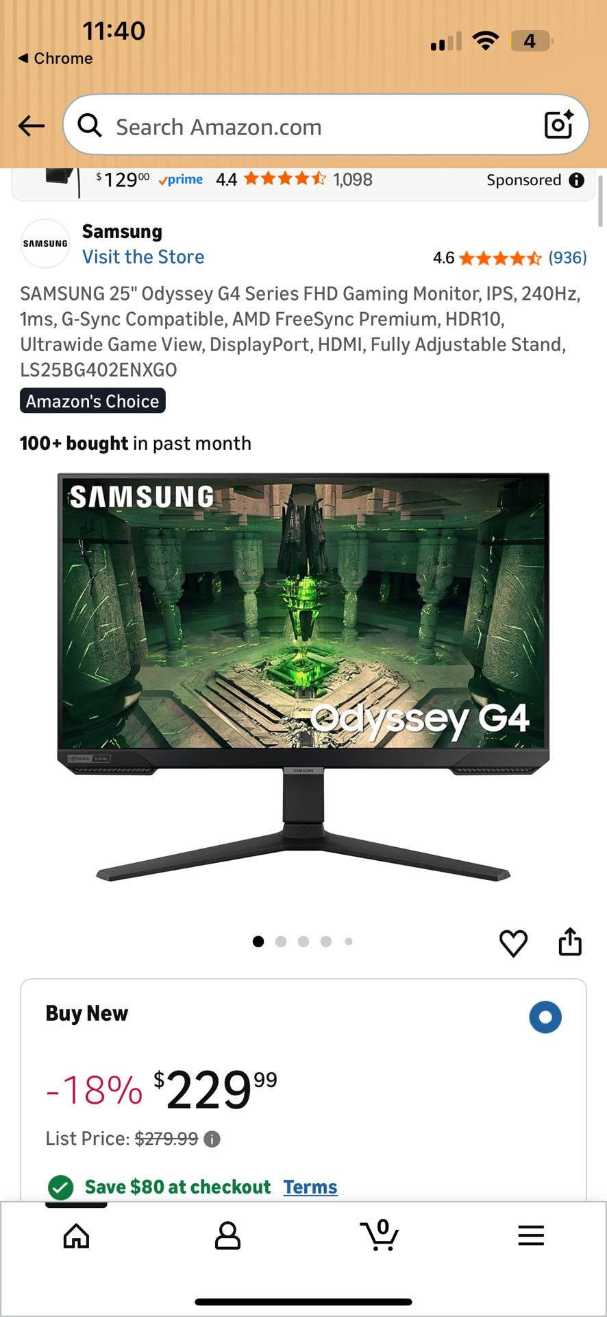Samsung Odyssey G4 240Hz 1080p Gaming Monitor