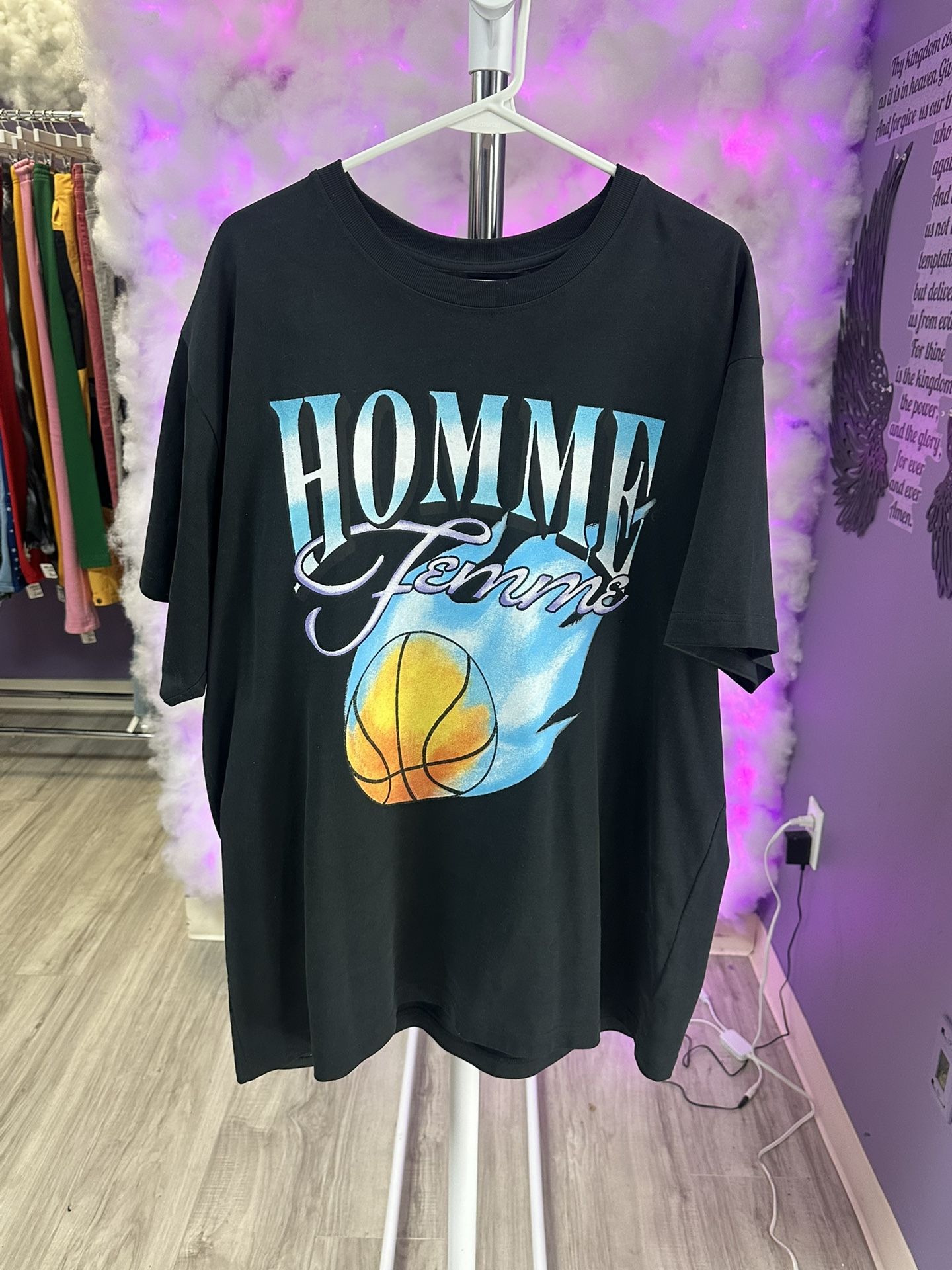 Homme Femme T-Shirt Black Flames