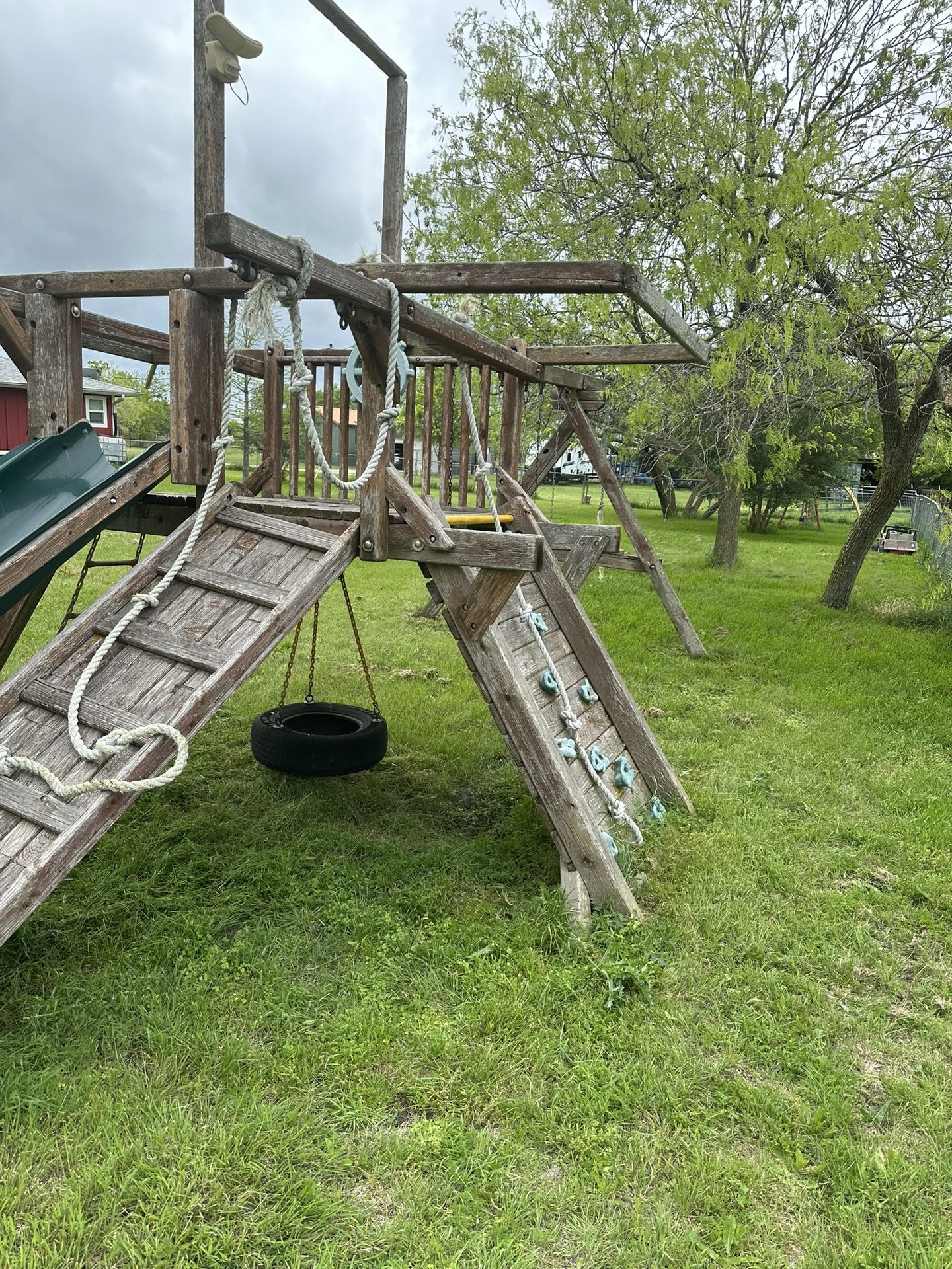 Rainbow play set Needs to be rescued in some spots Must come out to take down