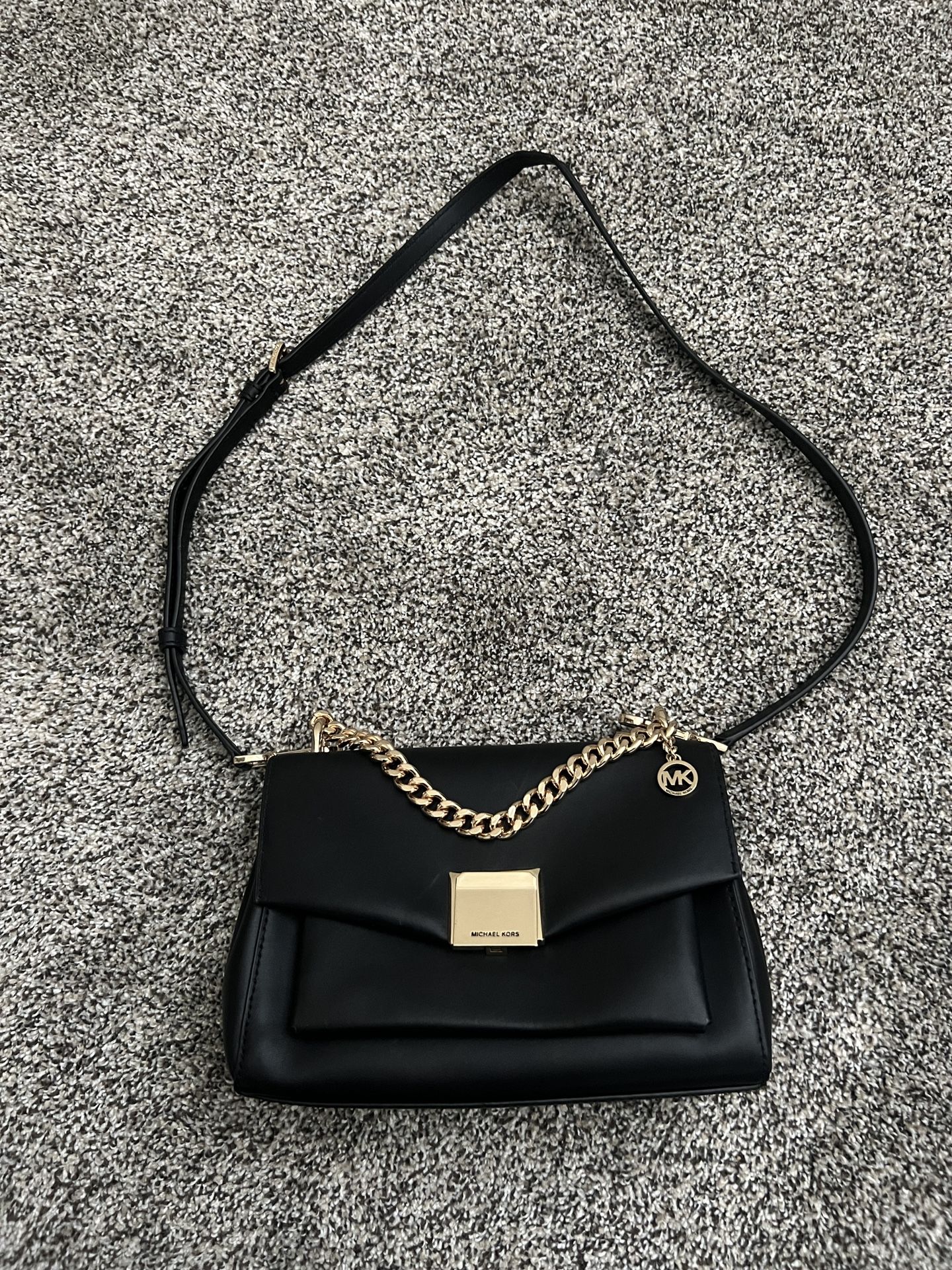 Michael Kors Lita Medium Chain Crossbody Bag - Black Leather/Gold-Tone Willing to negotiate (: