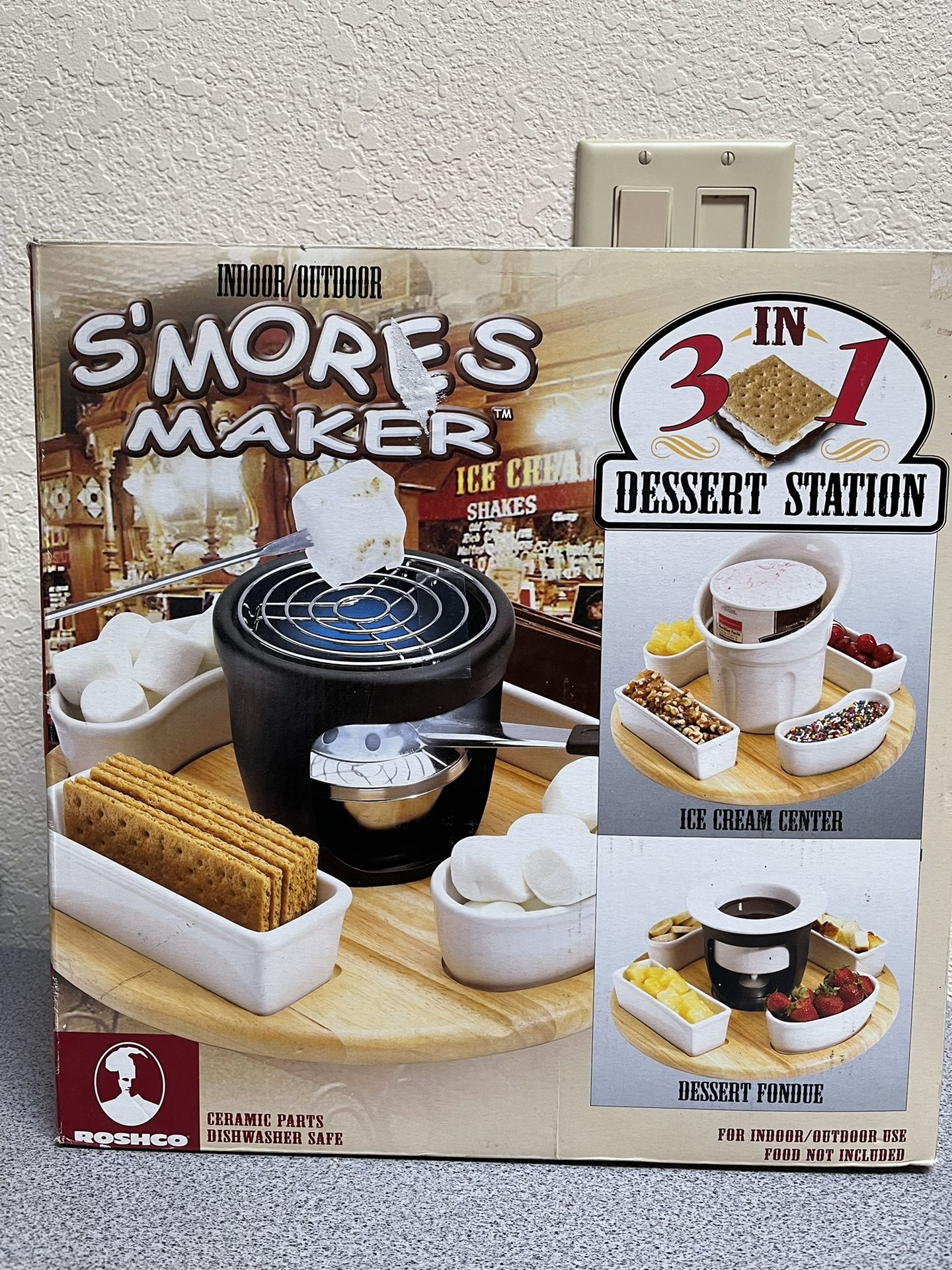 Outdoor/indoor s’mores maker. The lazy Susan that it sits on is really nice. You could use it for many different things, taco bar, appetizers or wherever. It’s new as I have never used it. I just opened it for the first time to make sure everything is in the box. It’s just taking up space that I need & I know I will never use. It needs a good home. 😄