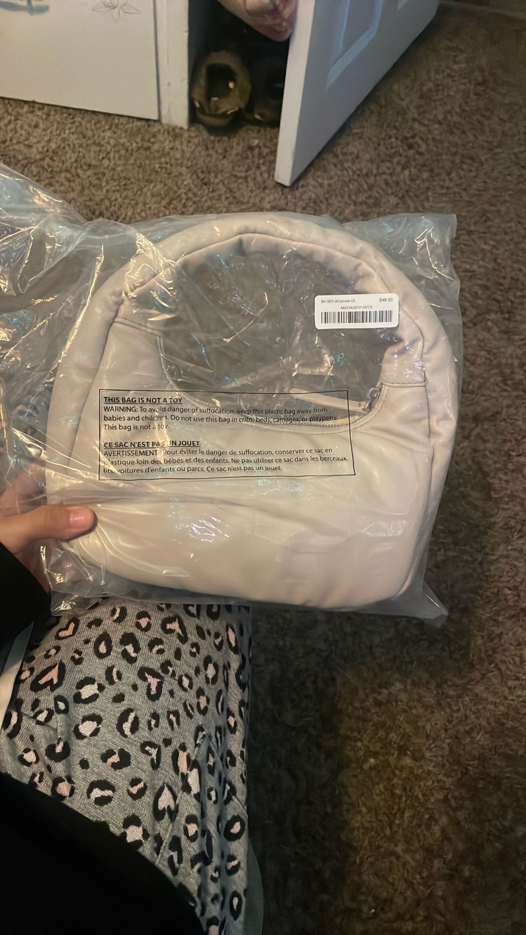 Brand New Puffer Crescent Shoulder Bag Oatmeal Color